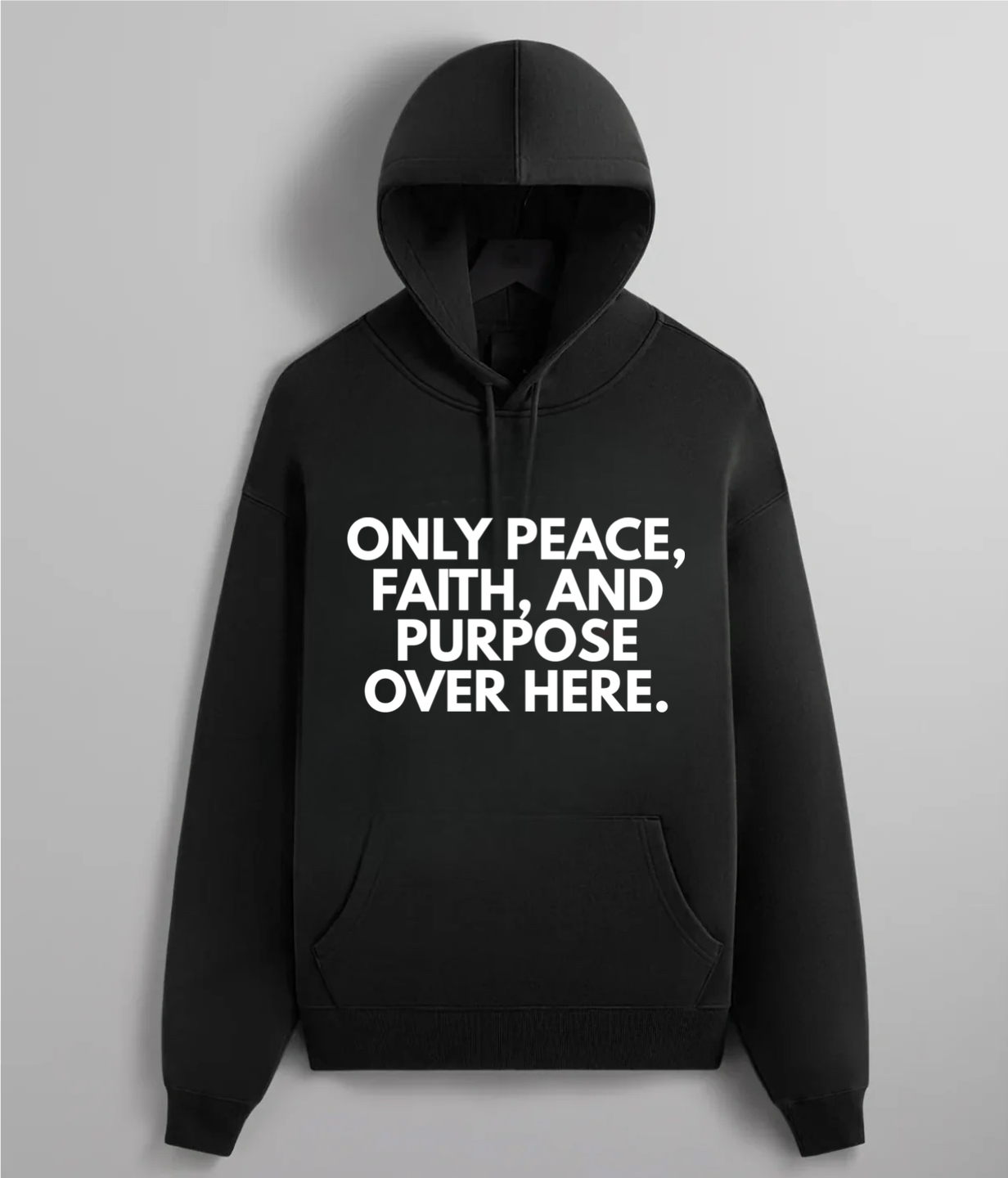 Embrace a life of peace, faith, and purpose with our Only Peace, Faith, & Purpose Hoodie. Keep yourself warm while spreading an encouraging message. Let this hoodie be a reminder of your lifestyle and inspire others to do the same.